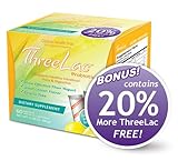 Threelac is a lemon-flavored dietary supplement to help support healthy intestinal flora & digestion. The strains of friendly bacteria in ThreeLac were specifically chosen for their unique ability to survive the gastric juices in your stomach and remain alive once they reach your digestive tract. GHT3 Proprietary Probiotic Blend: Bacillus Coagulans, Fructo-Oligosaccharides (FOS), Refind Dry Yeast Powder, Dietary Fiber as Galactomannan, Bacillus Subtilis, Enterococcus Faecalis. Read more